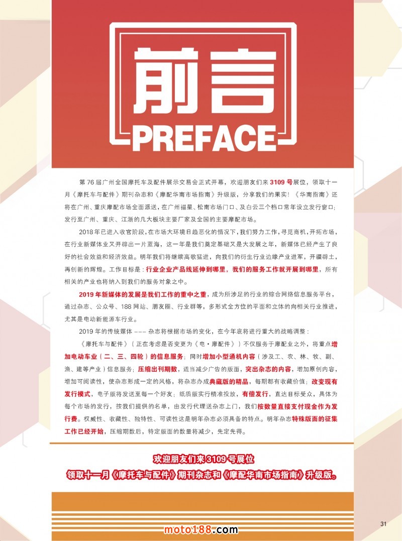 2018.11月《摩托車/電動車與配件》雜志,歡迎大家閱讀