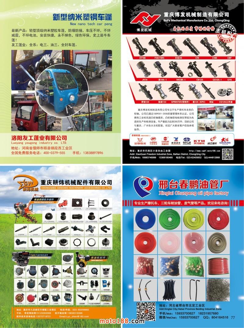 《摩托車與配件》(正在考慮是否變更為《電·摩配件》)不僅服務于摩配業之外,將重點增加電動車業(二、三、四輪)的信息服務;同時增加小型通機內容(涉及工、農、林、牧、副、漁、建等產業)信息服務;壓縮出刊期數,適當減少廣告的版面,突出雜志的內容,增加原創內容,增加可閱讀性,使雜志形成一定的風格,將雜志辦成典藏版的精品,每期都有收藏價值;改變現有發行模式,電子版將發送至每一個好友;紙質版實行精準投放,有償發行,直達目標受眾,具體為每個市場的發行,按我們提供的名單,由發行代理送雜志上門,我們按數量直接支付現金作為發行費。權威性、收藏性、獨特性、可讀性這是明年雜志必須具備的特點。明年雜志特殊版面的征集工作已經開始,壓縮期數后,特定版面的數量將減少,先定先得。