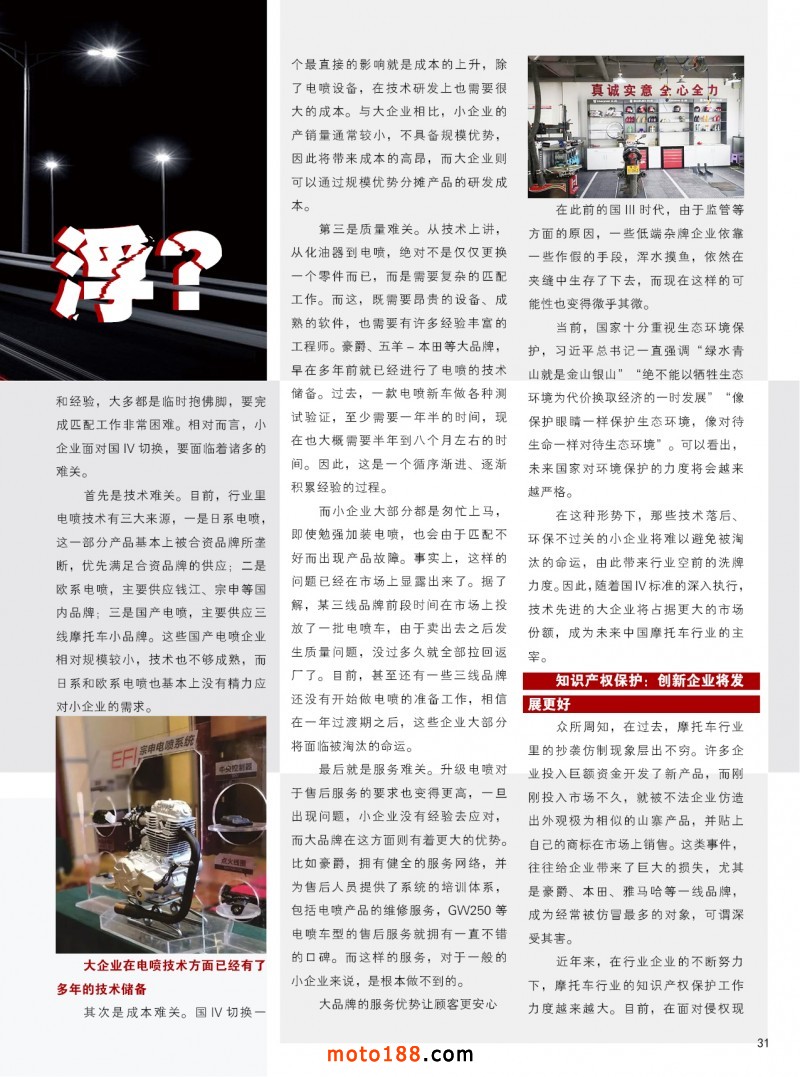 目前電動車新國標即將實行,3C標準的強制認證,國家新能源的戰略布局,也將給中國摩托車和電動車產業帶來革命性的變化,催生出未來的產品摩電或電摩:既有摩托車的速度和續駛里程,又有電動車的靜音無污染的工況…目前越來越多的企業,正在朝著這個方向努力,并且已經生產出不錯的產品,并推向市場,申請生產資質的企業增多,隨著產品性能的提高和完善,相應的配套政策出臺,消費者不斷的增加,新能源電摩將會是市場新的消費熱點,我們未雨綢繆提早布局于這個未來新興市場,我們雜志也將定位于《電摩與配件》。  同時我們的服務形式也將逐步以新媒體來取代傳統媒體,今年大力度的壓縮出刊期數,增加更多的新媒體的服務新形式,用更快捷、經濟、方便、有效的方式和手段來服務于未來的企業。
