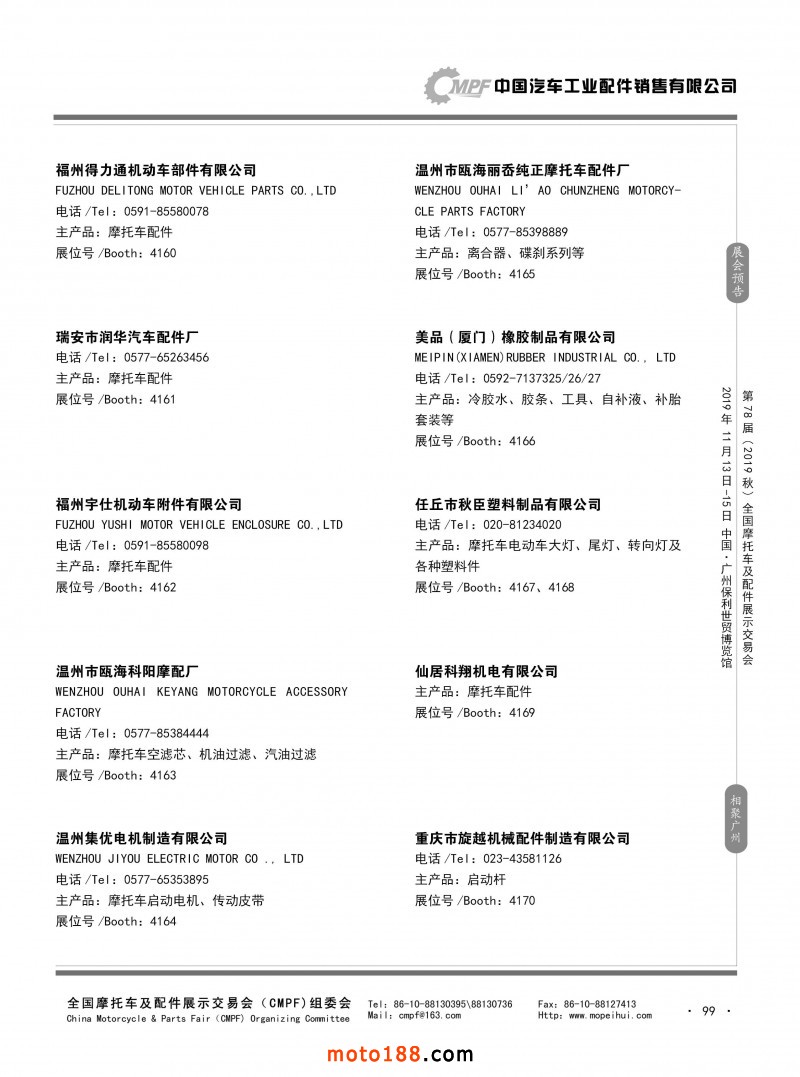 內(nèi)99 第77屆(2019春)全國(guó)摩托車及配件展示交易會(huì)-青島站參展企業(yè)信息