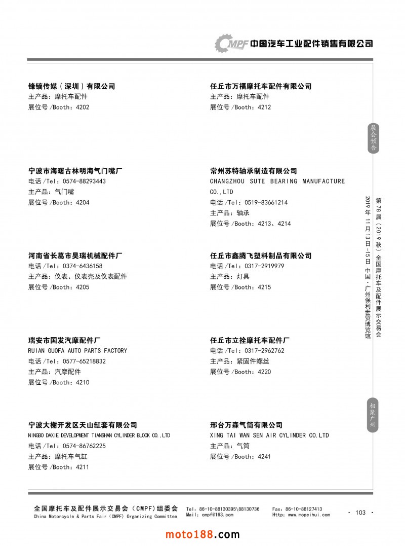 內103 第77屆(2019春)全國摩托車及配件展示交易會-青島站參展企業信息