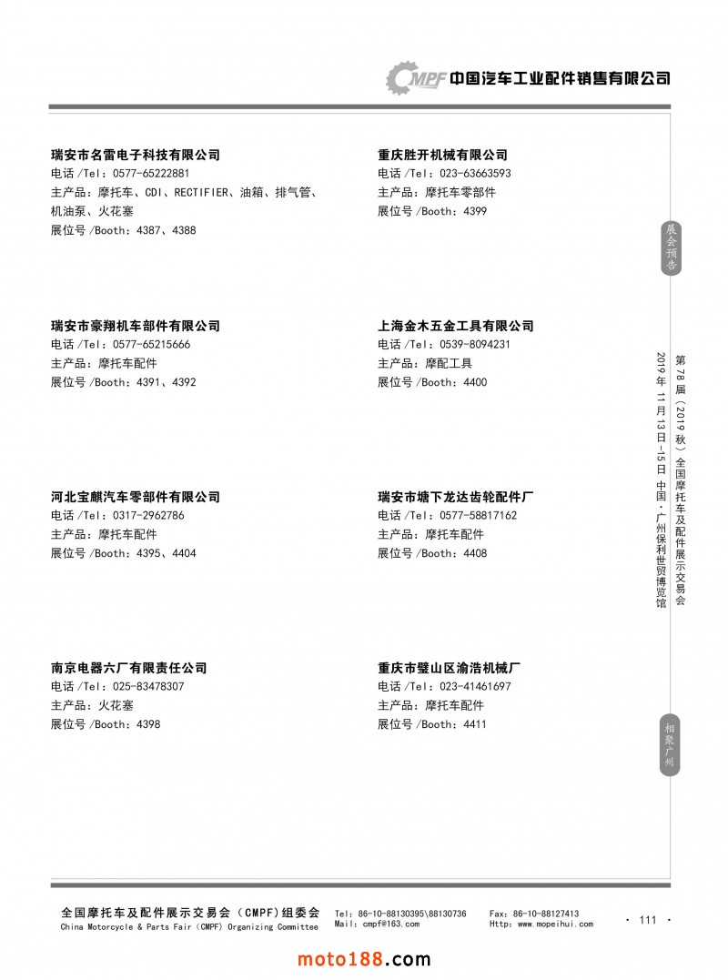 內111 第77屆(2019春)全國摩托車及配件展示交易會-青島站參展企業信息