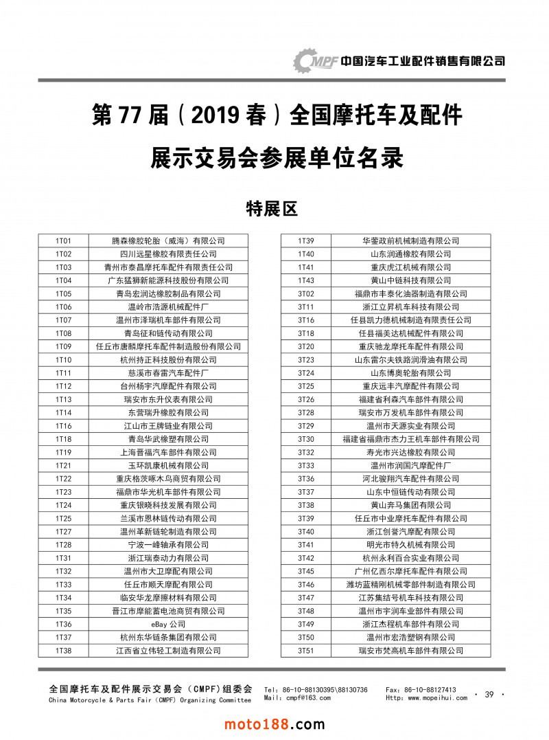 內39 第77屆(2019春)全國摩托車及配件展示交易會-青島站參展單位名錄