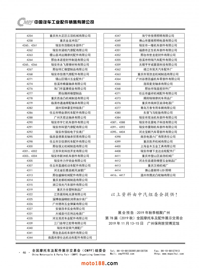 內46 第77屆(2019春)全國摩托車及配件展示交易會-青島站參展單位名錄