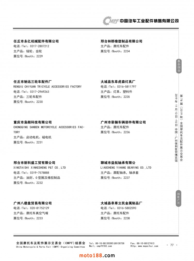 內(nèi)77 第77屆(2019春)全國摩托車及配件展示交易會(huì)-青島站參展企業(yè)信息