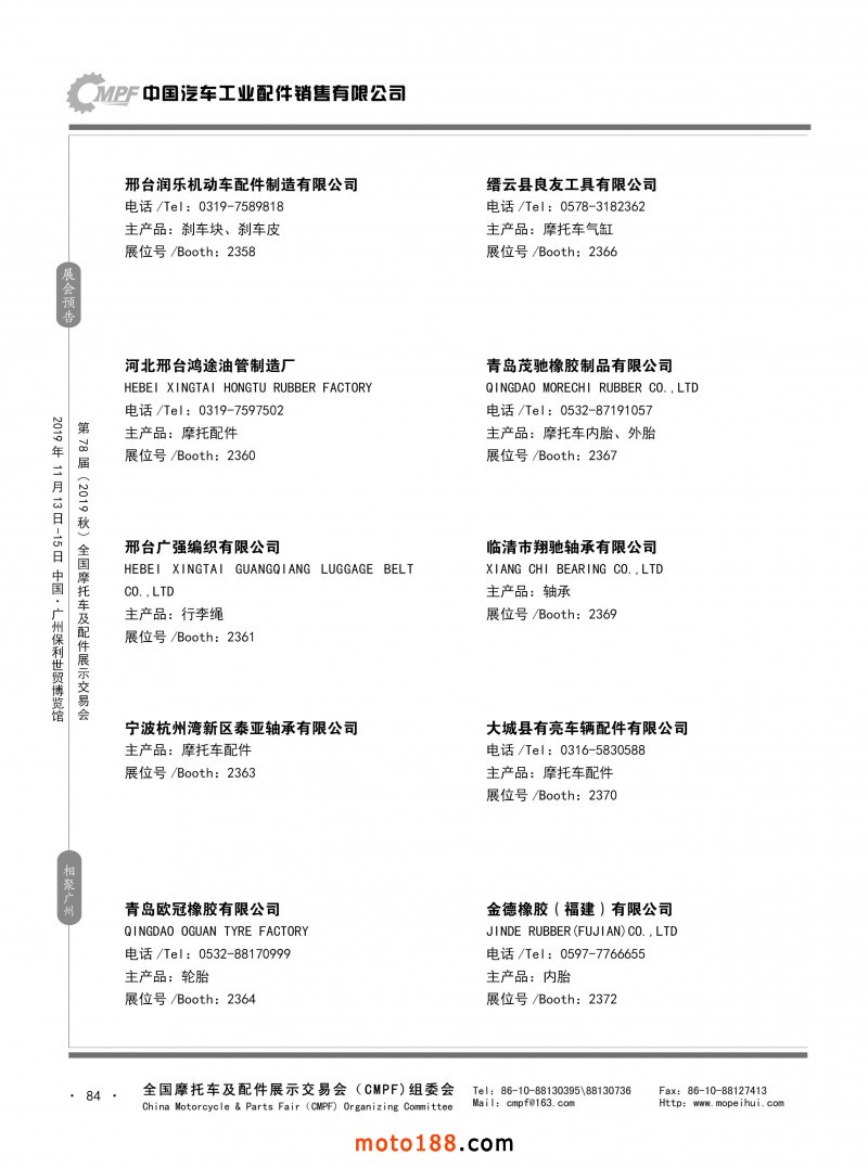 內84 第77屆(2019春)全國摩托車及配件展示交易會-青島站參展企業信息
