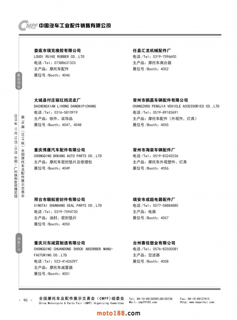 內90 第77屆(2019春)全國摩托車及配件展示交易會-青島站參展企業信息