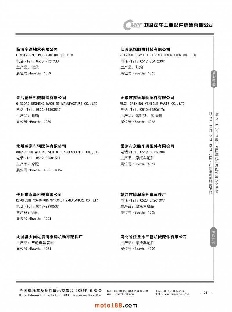 內91 第77屆(2019春)全國摩托車及配件展示交易會-青島站參展企業信息