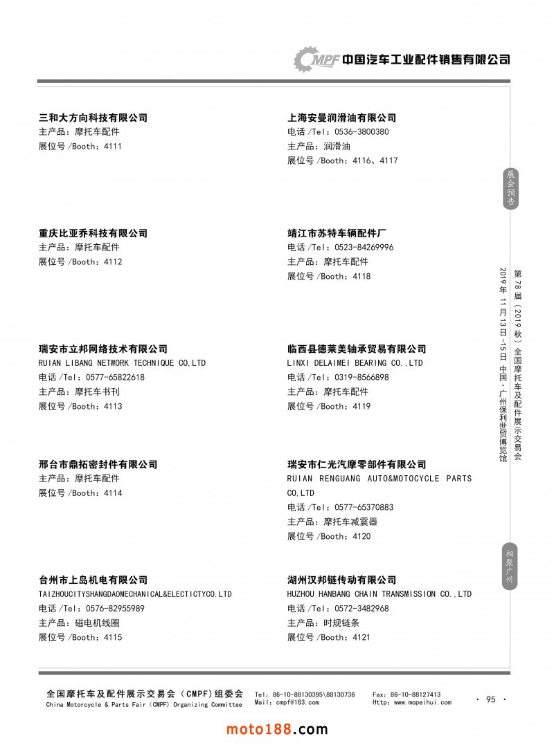 內95 第77屆(2019春)全國摩托車及配件展示交易會-青島站參展企業信息