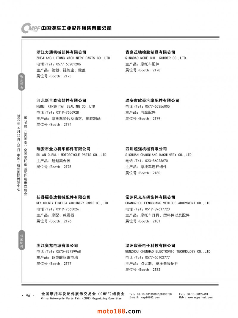 內79-172 第78屆(2019秋)全國摩托車及配件展示交易會-廣州站參展企業信息