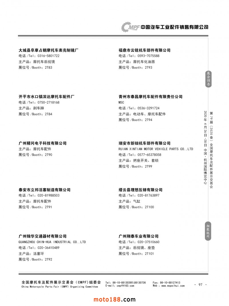內79-172 第78屆(2019秋)全國摩托車及配件展示交易會-廣州站參展企業信息