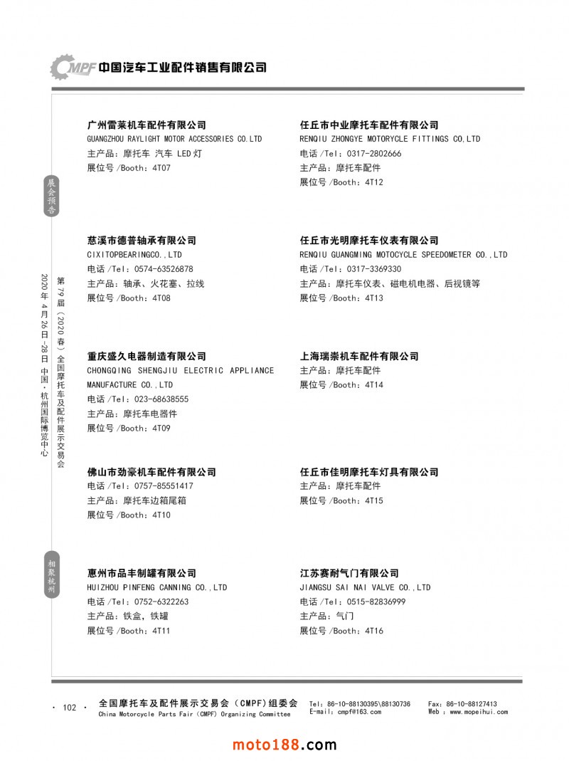 內(nèi)79-172 第78屆(2019秋)全國摩托車及配件展示交易會(huì)-廣州站參展企業(yè)信息