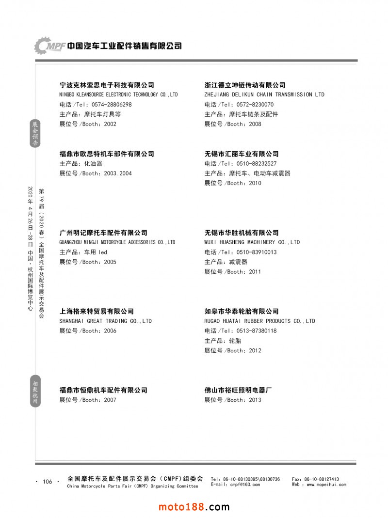 內79-172 第78屆(2019秋)全國摩托車及配件展示交易會-廣州站參展企業信息