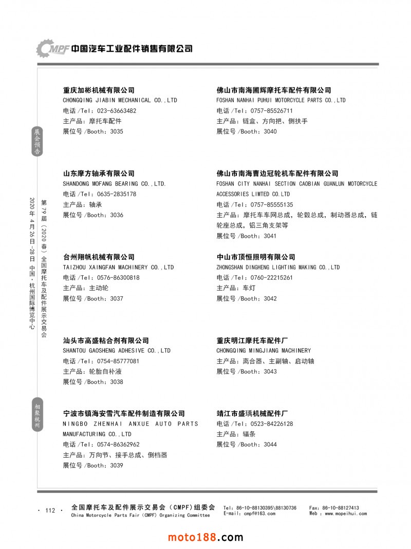 內79-172 第78屆(2019秋)全國摩托車及配件展示交易會-廣州站參展企業信息