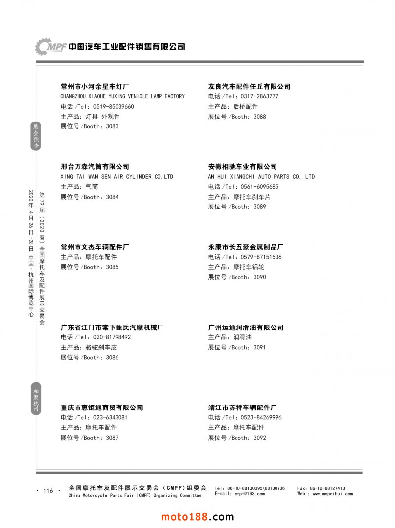 內79-172 第78屆(2019秋)全國摩托車及配件展示交易會-廣州站參展企業信息