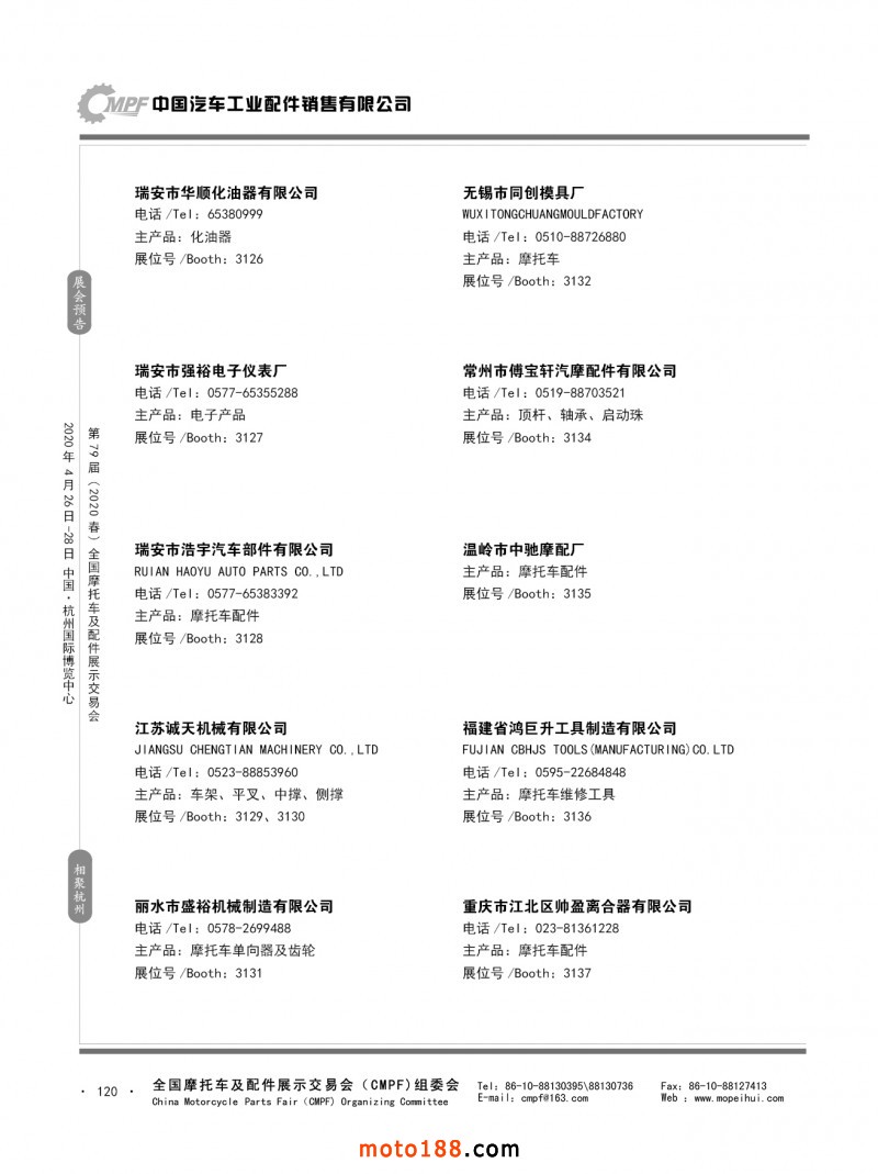 內79-172 第78屆(2019秋)全國摩托車及配件展示交易會-廣州站參展企業信息