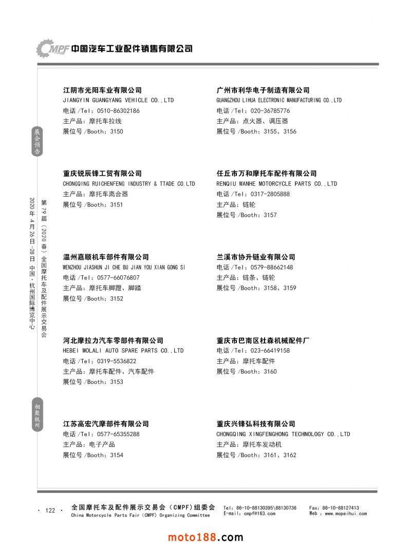 內79-172 第78屆(2019秋)全國摩托車及配件展示交易會-廣州站參展企業信息