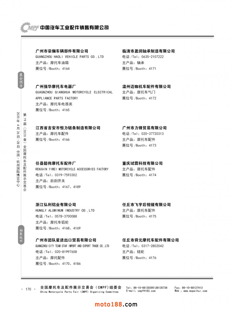 內79-172 第78屆(2019秋)全國摩托車及配件展示交易會-廣州站參展企業信息