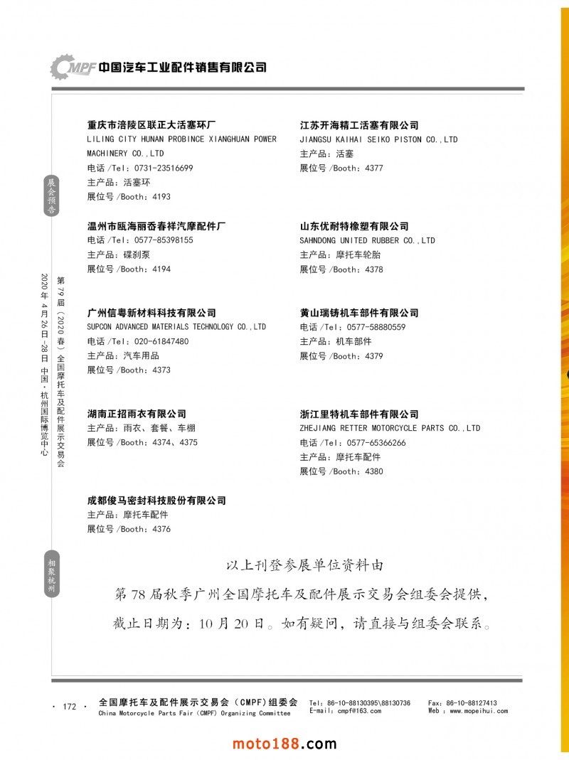 內79-172 第78屆(2019秋)全國摩托車及配件展示交易會-廣州站參展企業信息
