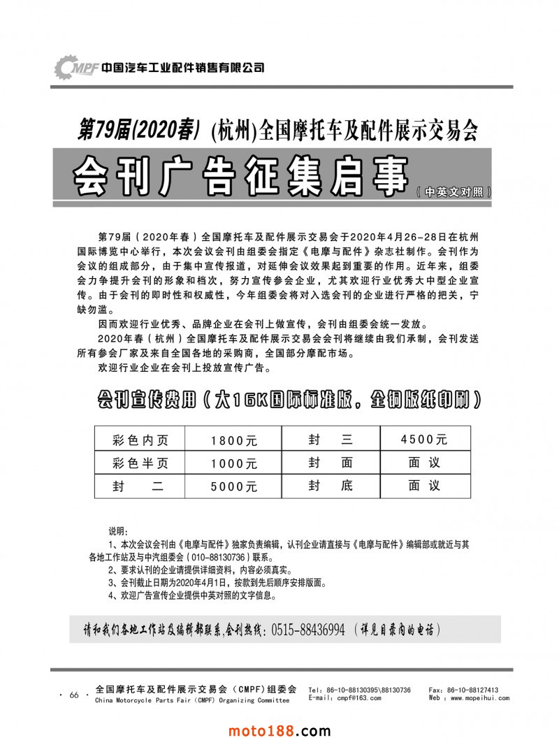 內66 第79屆(2020春)全國摩托車及配件展示交易會-杭州站會刊征集啟事