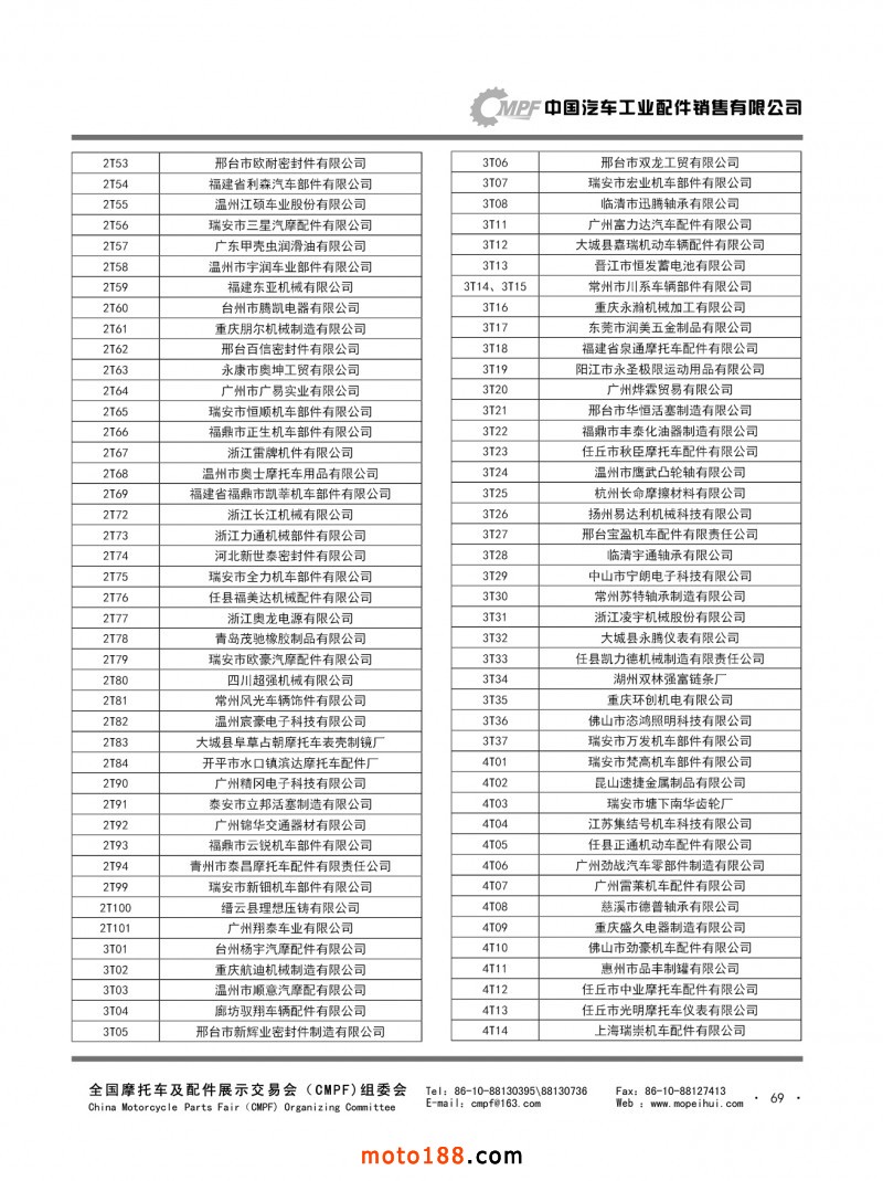 內67-78 第78屆(2019秋)全國摩托車及配件展示交易會-廣州站參展單位名錄