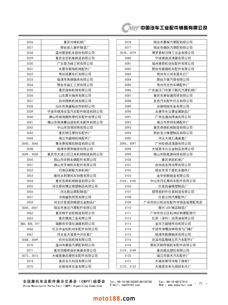 內67-78 第78屆(2019秋)全國摩托車及配件展示交易會-廣州站參展單位名錄