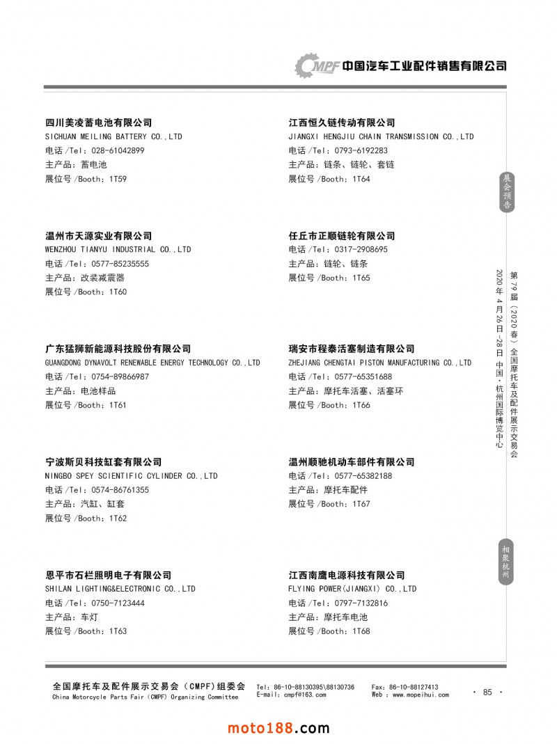 內79-172 第78屆(2019秋)全國摩托車及配件展示交易會-廣州站參展企業信息