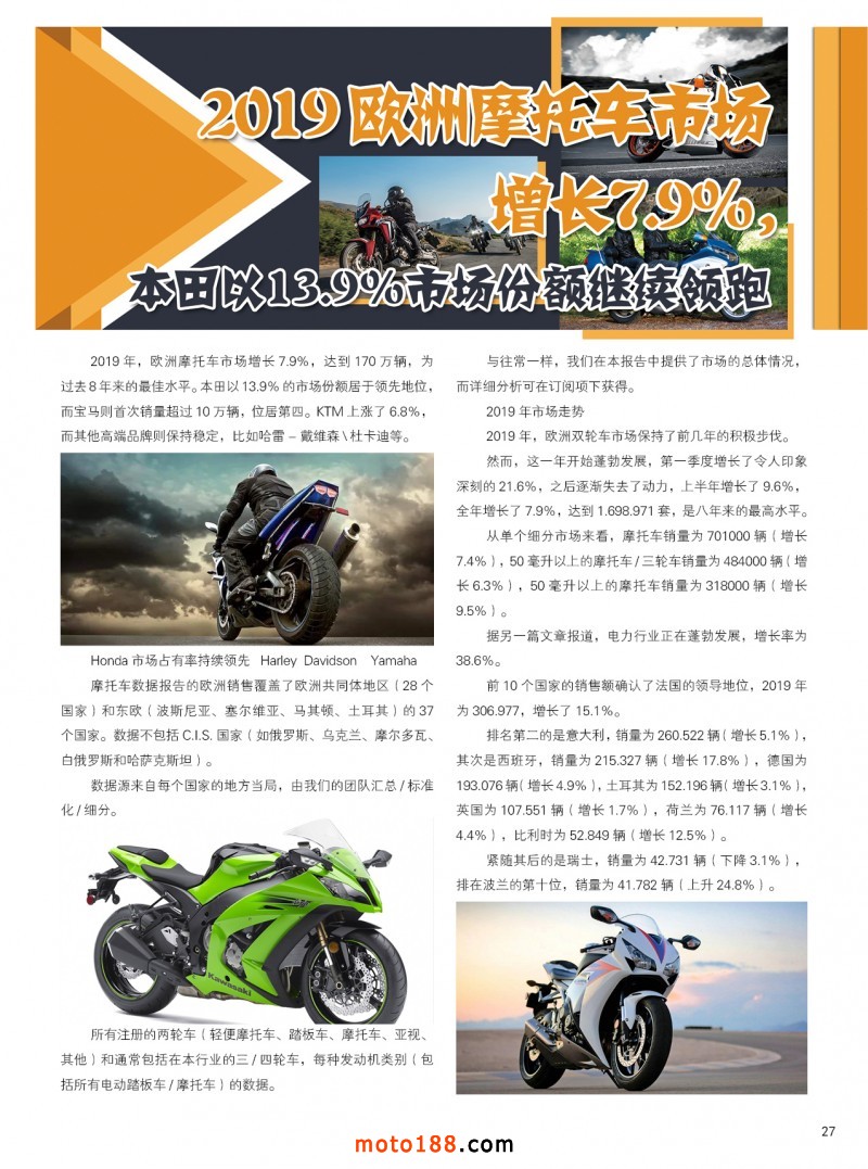 內27 2019歐洲摩托車市場增長7.9%,本田以13.9%市場份額繼續領跑