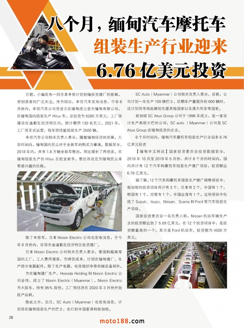 內28 八個月,緬甸汽車摩托車組裝生產行業迎來6.76億美元投資