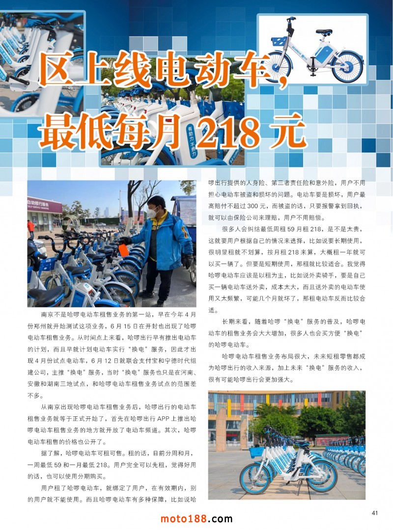 內41 哈啰出行部分地區上線電動車,可租可買,最低每月218元