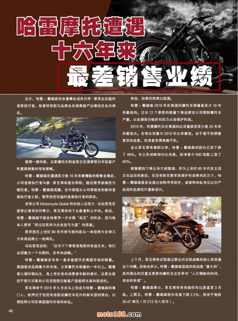 內40 哈雷摩托遭遇16年來最差銷售業績
