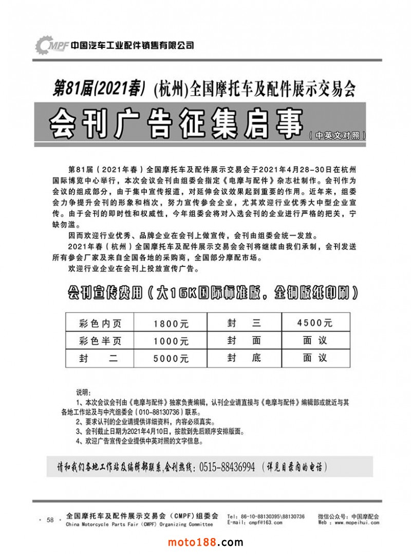 內58 第81屆(2021春)全國摩托車及配件展示交易會-杭州站會刊征集啟事