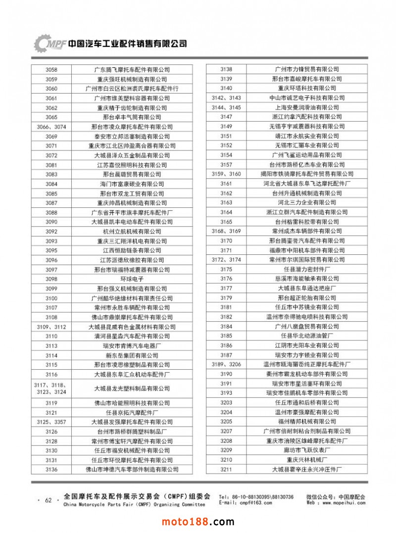 內62 第80屆(2020秋)全國摩托車及配件展示交易會-廣州站參展單位名錄