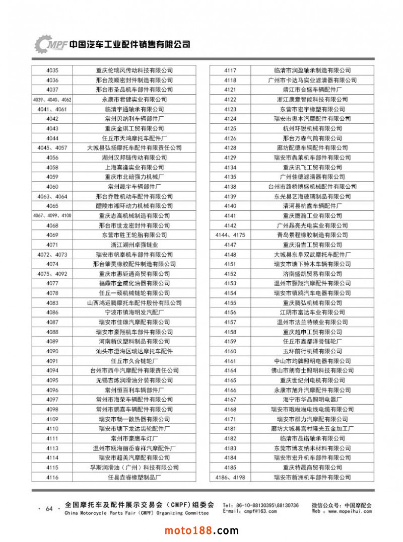 內64 第80屆(2020秋)全國摩托車及配件展示交易會-廣州站參展單位名錄