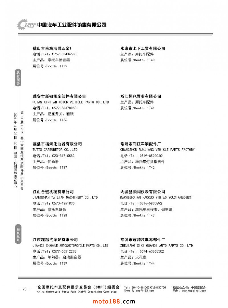 內70 第80屆(2020秋)全國摩托車及配件展示交易會-廣州站參展企業信息