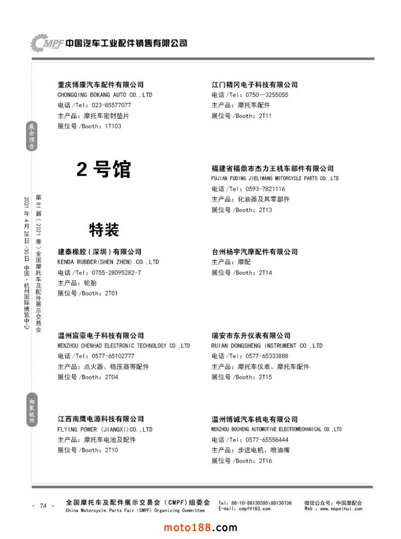 內74 第80屆(2020秋)全國摩托車及配件展示交易會-廣州站參展企業信息