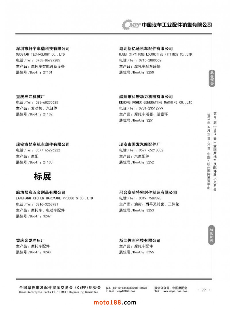 內(nèi)79 第80屆(2020秋)全國(guó)摩托車及配件展示交易會(huì)-廣州站參展企業(yè)信息