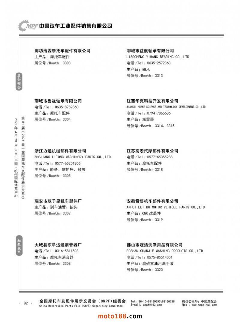 內82 第80屆(2020秋)全國摩托車及配件展示交易會-廣州站參展企業信息