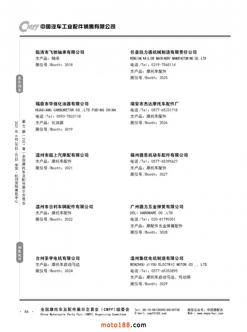 內86 第80屆(2020秋)全國摩托車及配件展示交易會-廣州站參展企業信息