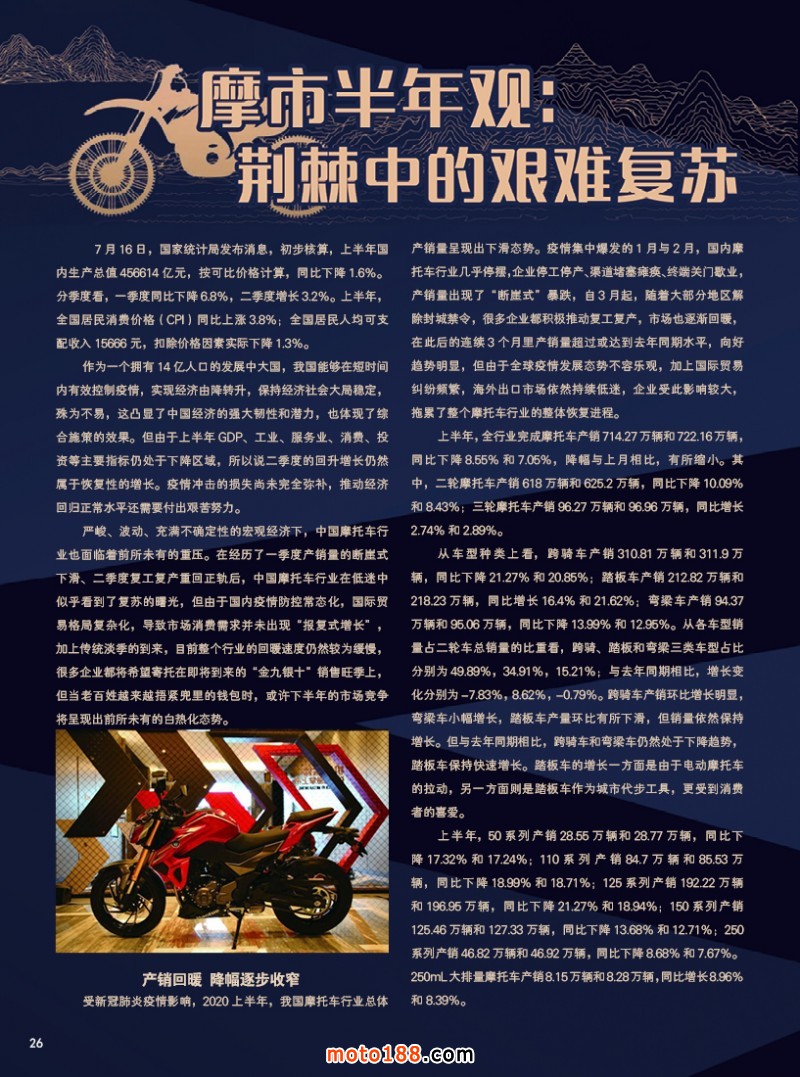 今年受疫情及外部大環(huán)境的影響,我國的外貿(mào)出口遇到了重大的挑戰(zhàn)。國家提出了內(nèi)循環(huán)發(fā)展方向,必將促進(jìn)內(nèi)需市場(chǎng),也為我們制造業(yè)的發(fā)展帶來了機(jī)遇,我們電摩托車行業(yè)同仁可以奮斗在國內(nèi)國外的兩個(gè)市場(chǎng)。