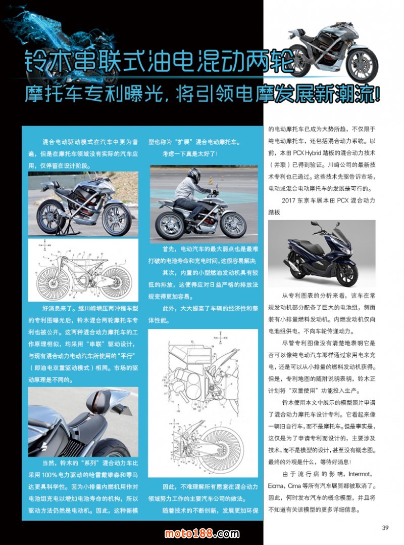內39 鈴木串聯式油電混動兩輪,摩托車專利曝光,將引領電摩發展新潮流!
