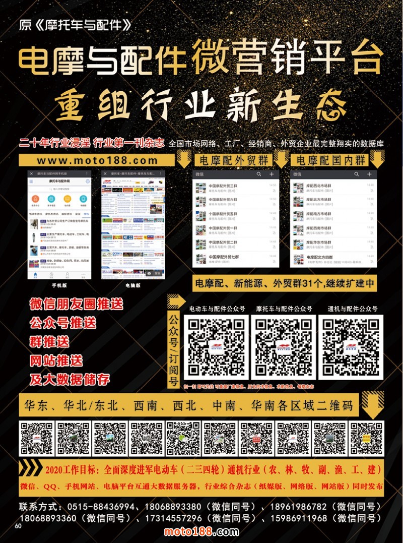 由于我們新媒體業(yè)務(wù)的迅速發(fā)展,已取代傳統(tǒng)的媒體,業(yè)務(wù)量已經(jīng)超過了我們傳統(tǒng)媒體,并取而代之成為主業(yè)務(wù)。《電摩與配件》(原《摩托車與配件》)雜志也將完成歷史的使命,我們做好終極版的《電摩與配件》11月期即本期雜志,以及廣州摩配會(huì)的《會(huì)刊》。善始善終,以完美的結(jié)局進(jìn)行收尾,不負(fù)行業(yè)不負(fù)你我,不忘初心方得始終!