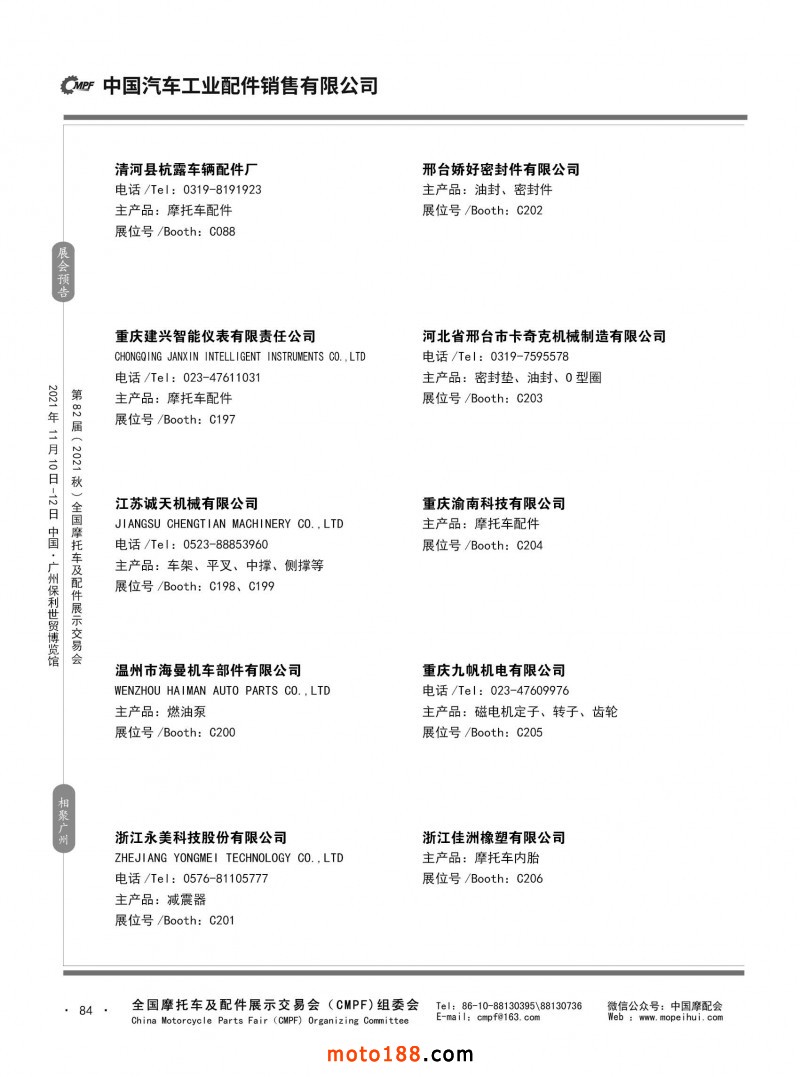內84 第81屆(2021春)全國摩托車及配件展示交易會-杭州站參展企業信息