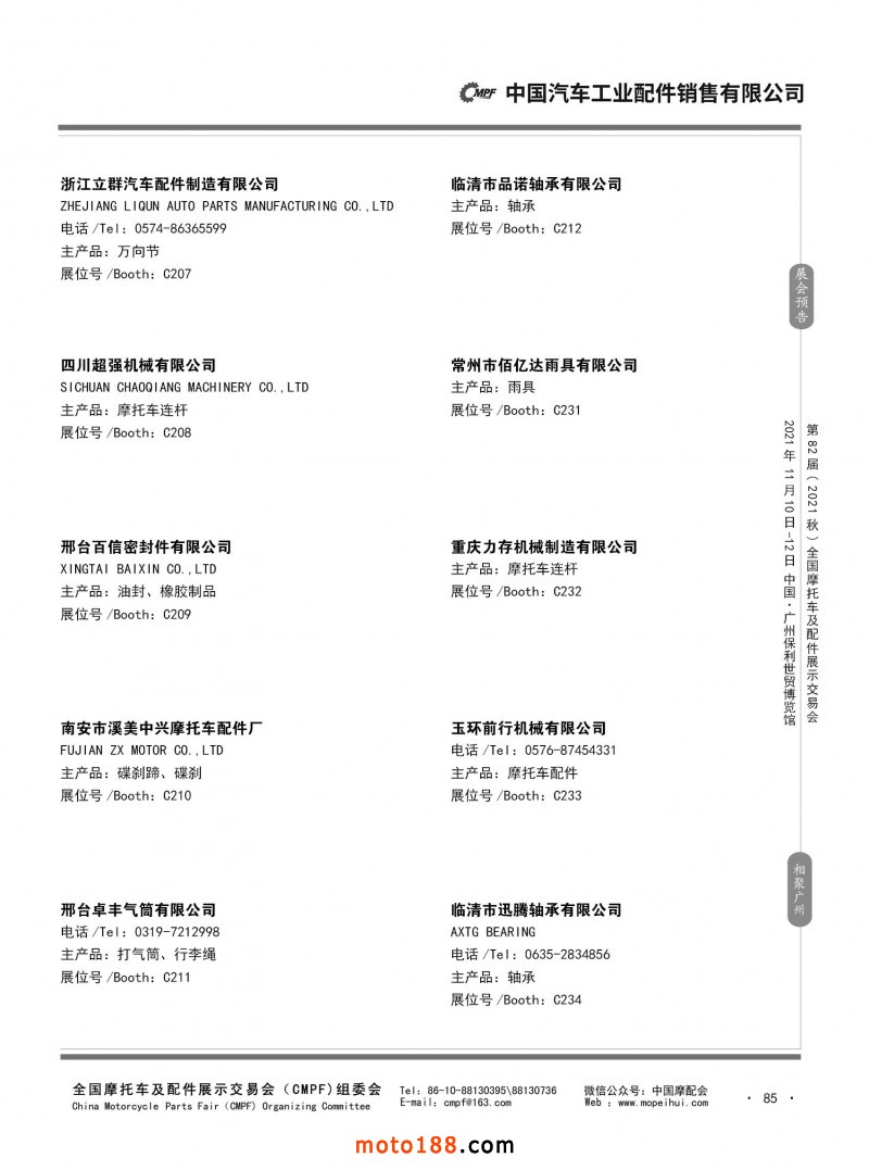 內(nèi)85 第81屆(2021春)全國(guó)摩托車及配件展示交易會(huì)-杭州站參展企業(yè)信息