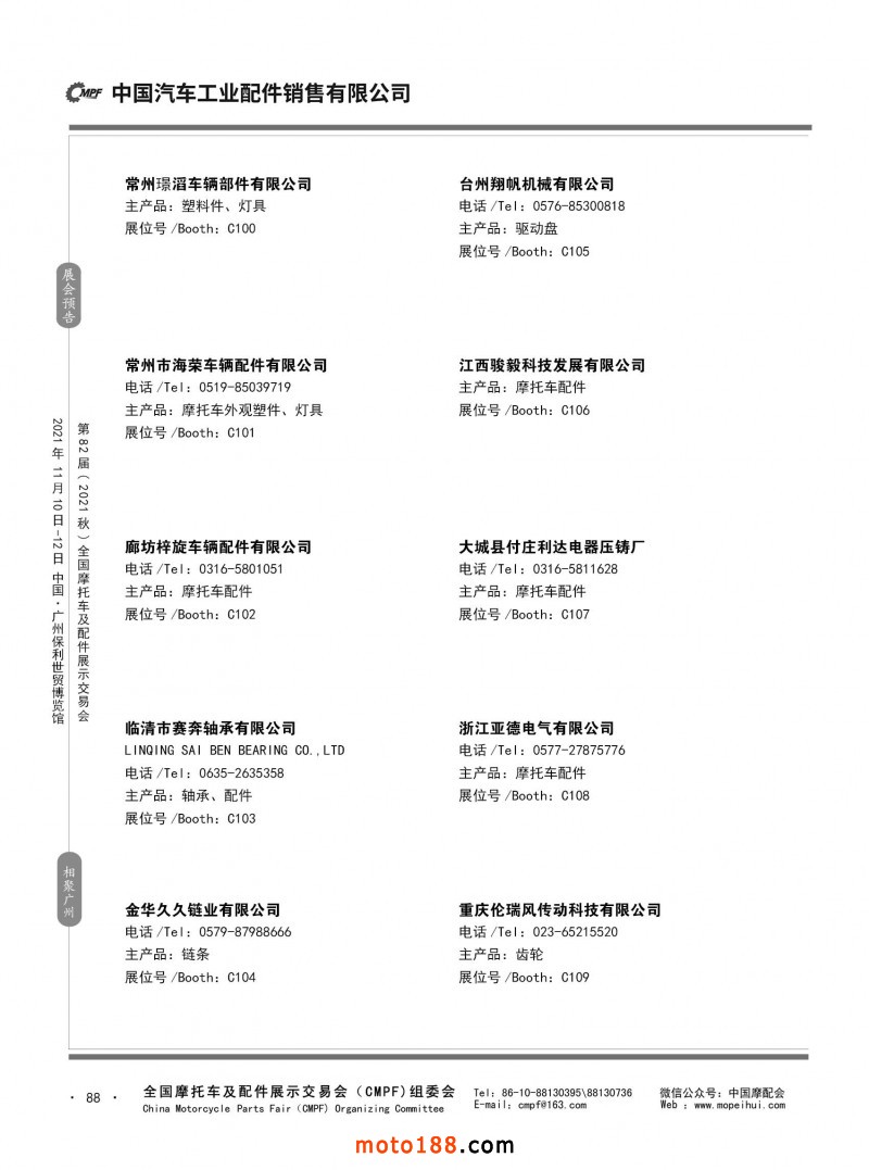 內88 第81屆(2021春)全國摩托車及配件展示交易會-杭州站參展企業信息