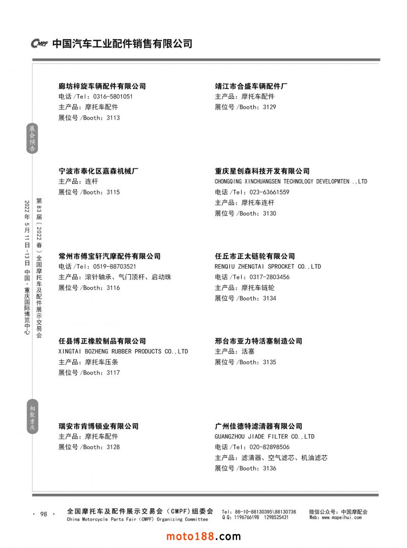 內98 第82屆(2021秋)全國摩托車及配件展示交易會-廣州站參展企業信息