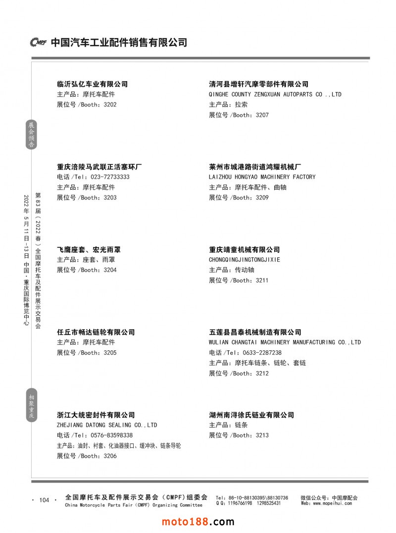 內103 第82屆(2021秋)全國摩托車及配件展示交易會-廣州站參展企業信息