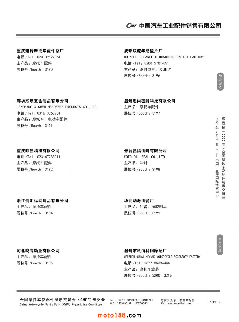 內(nèi)104 第82屆(2021秋)全國摩托車及配件展示交易會-廣州站參展企業(yè)信息