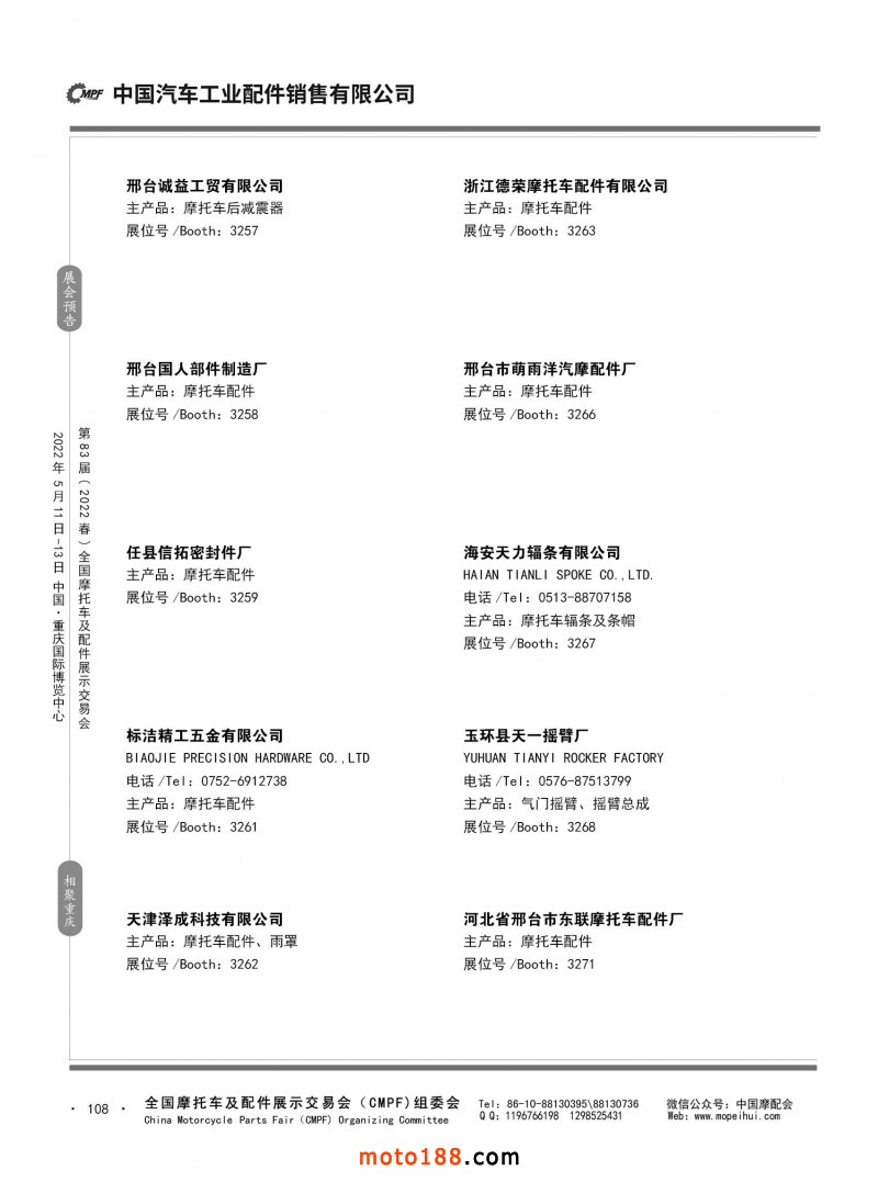 內108 第82屆(2021秋)全國摩托車及配件展示交易會-廣州站參展企業信息