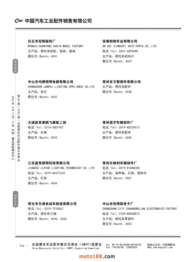 內116 第82屆(2021秋)全國摩托車及配件展示交易會-廣州站參展企業信息